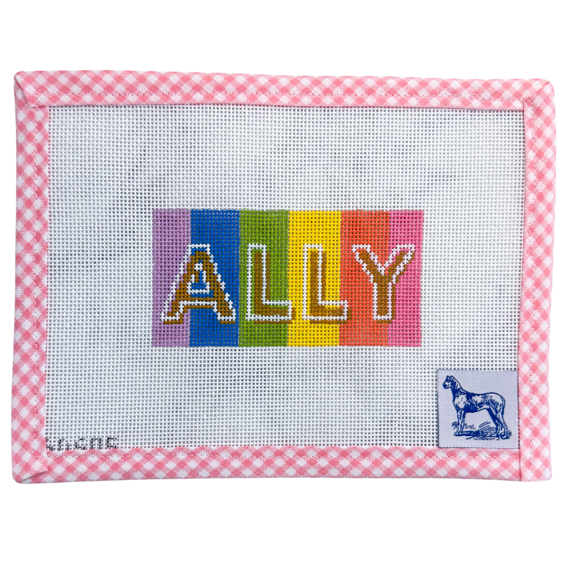 A bold, heartfelt statement in every stitch. The ALLY canvas features rainbow-striped color blocking and crisp white lettering, hand-painted on 18 mesh. Measuring 4 x 2 inches on an 8 x 6 inch canvas, it’s a vibrant reminder that love and support should always be loud. Finish it as an ornament, framed piece, or clutch insert—and stitch your pride in every row.