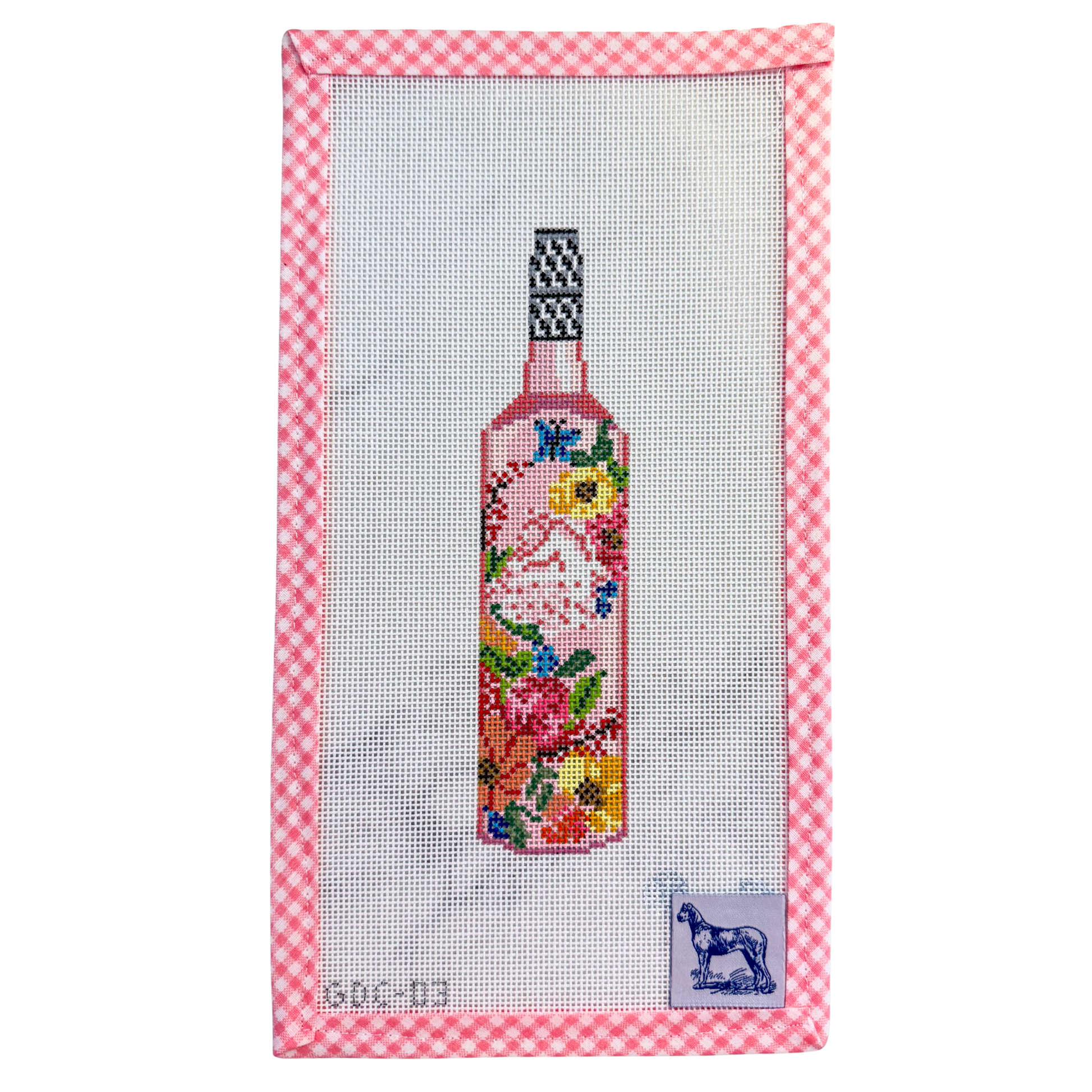 A bottle that looks as good as it sips. Summer Rosé is a fan-favorite canvas featuring a tall, hand-painted bottle wrapped in bold blooming florals and topped with a signature black-and-white cap. Radiating summer charm and celebratory energy, it’s a joyful nod to rosé season and the floral-filled days that come with it. This 1.75 x 6.75 inch canvas is painted on 18 mesh; fibers not included.